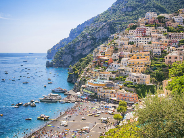 西のソレント側の海岸に位置するポジターノもおすすめです。カラフルな家々が断崖絶壁に張り付いたようにびっしりと建ち並んでいます。