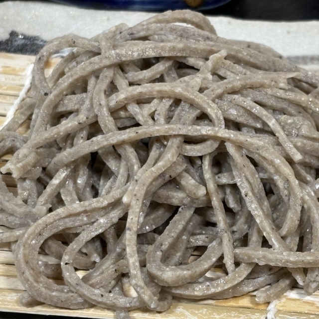 楽しみにしていた専心庵の粗挽き蕎麦。蕎麦の実をかみしめるように食します。通常の蕎麦と比べると太く、粗い蕎麦。専心庵さんでしか、食べることができません。